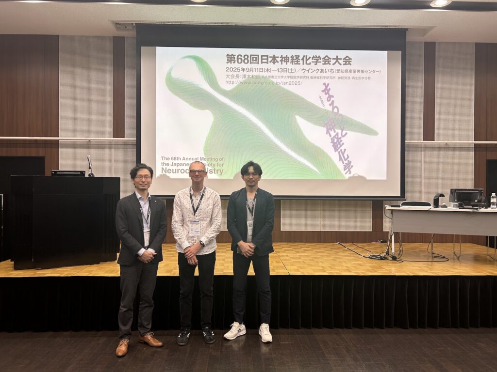 2025年9月11日〜13日、ウィンクあいち(愛知県産業労働センター)にて、第68回日本神経化学会大会(ESイブニングセミナー、SS-4大会長企画シンポジウム、PLプレナリーレクチャー)を共催しました。国際ニューロン新生研究拠点の参加研究者・関係者が集まり、最新の研究成果を発表しました。